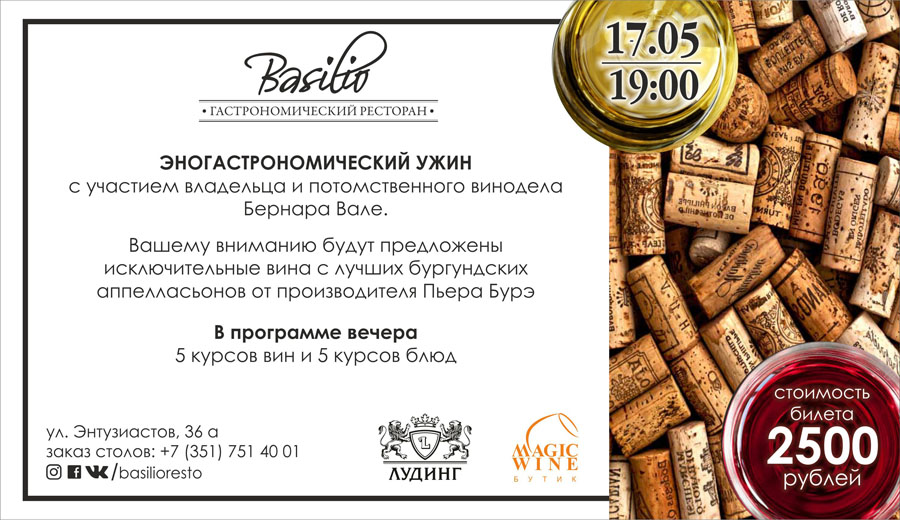 Дорогие Друзья! Винный бутик "Магия Вина", виноторговая компания "Лудинг" и ресторан "Базилио" приглашают Вас...